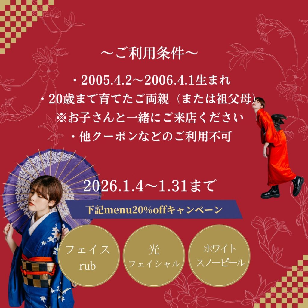 一緒にご来店+施術(新成人のみも可)で20%OFF